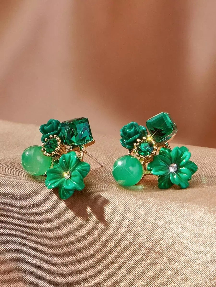 Green Pleasure Charms Stud Earring