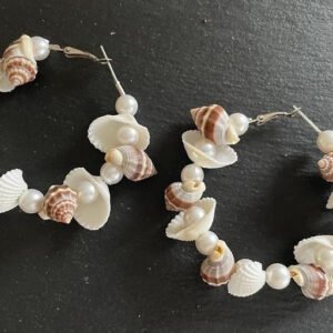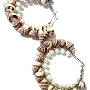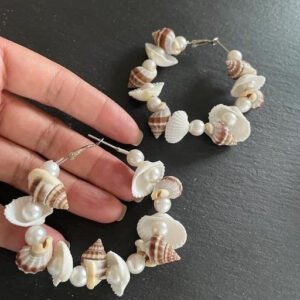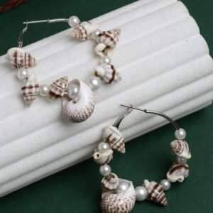 Be the first to review “Moedbuille Handcrafted Cowri & Pearls Studded Filigree Work Oxidised Gold Plated Hoop Earrings”