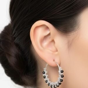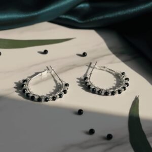 Be the first to review “Nauraad Silver Plated Black Beaded Hoop Earrings for Women – Crystal Rhinestone Wrapped Bali Loops – Lightweight Fancy Circle Earrings for Party, Office & Western Wear”