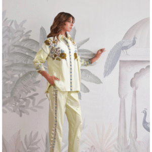 Introducing the Naurad Pastel Petal Kurta Set – a perfect blend of comfort, artistry, and effortless style. Crafted in a soothing lemon-yellow hue, this two-piece ensemble features a relaxed-fit kurta with delicate floral embroidery across the shoulders, sleeves, and button placket, beautifully showcasing handmade craftsmanship. The coordinating straight pants are detailed with a matching embroidered stripe along the sides, adding a subtle yet elegant touch.