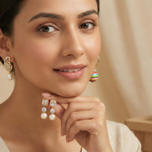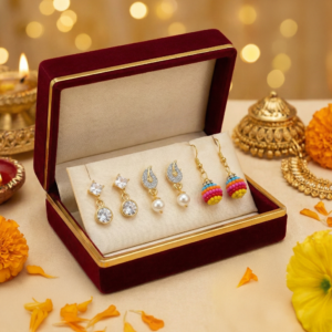 Be the first to review “Naurrad Gold Plated Jewellery Combo of 3 Pairs – Multicolor Beaded Ball, American Diamond Crystal Drop & Paisley Pearl Stud Earrings Set for Women”